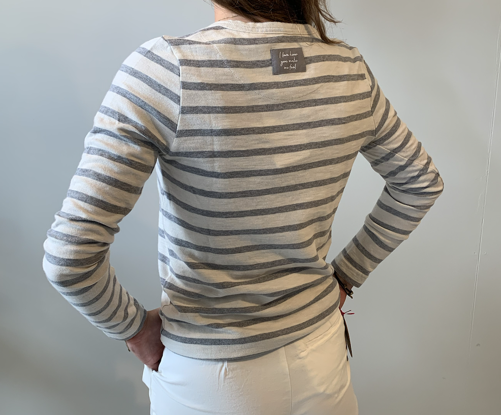 The Shirt Project Longsleeve Stripe soft white/grey melange