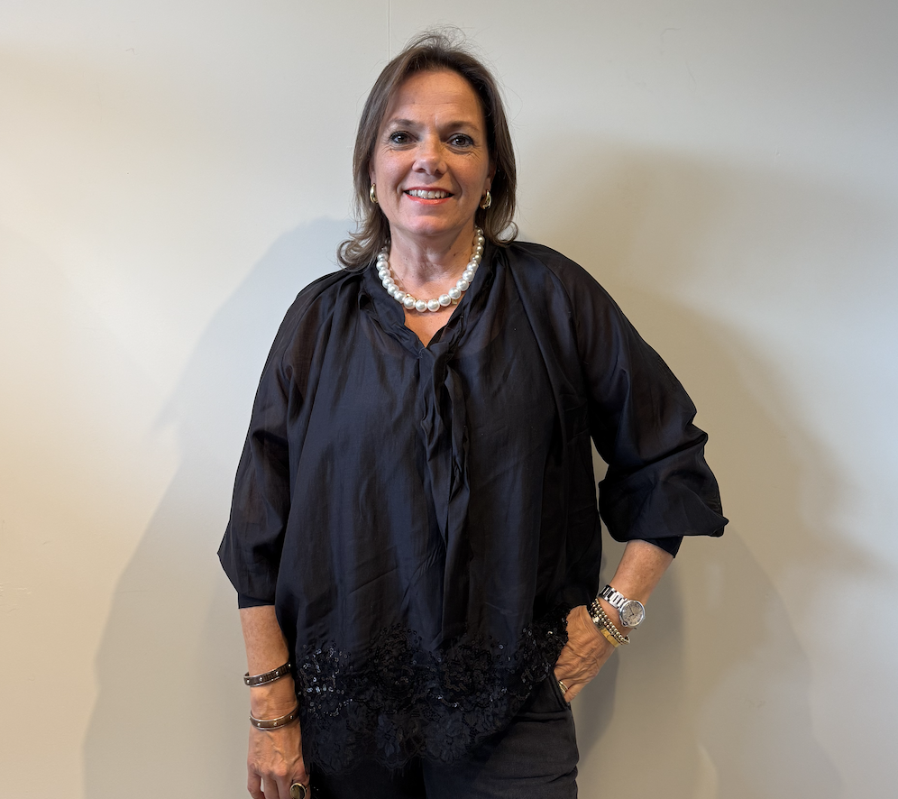 Blouse Minne black heeft een strik detail bij de hals, kanten details aan de onderzijde en is one size. Verkrijgbaar in meerdere kleuren.