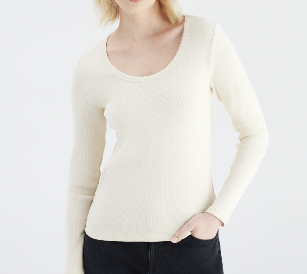 COJ Longsleeve Dora offwhite is een katoen basic shirt met lange mouw en een lage ronde hals. Verkrijgbaar in meerdere kleuren.