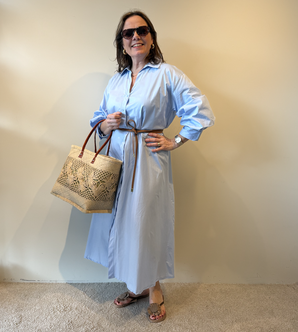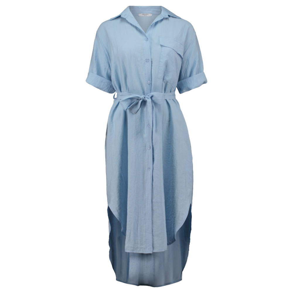 Dress Jolien light blue heeft een tricot top en een katoenen rok. De jurk is one size en verkrijgbaar in meerdere kleuren!