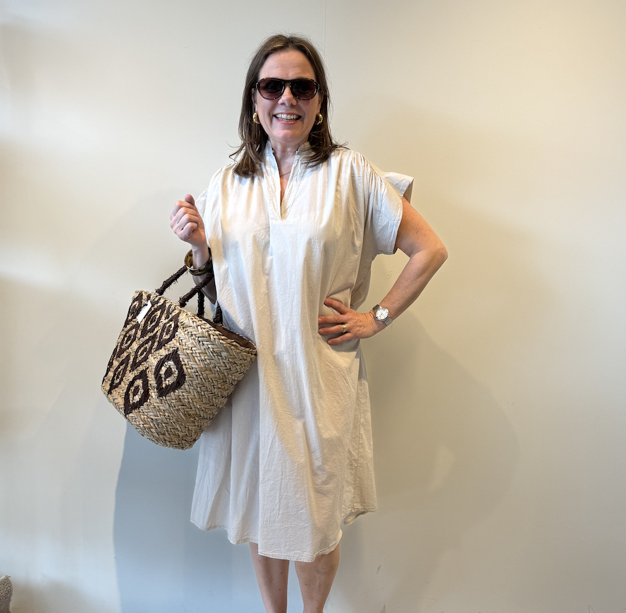 Dress Juna light blue is een katoenen doorknoop jurk met een ballonmouw. De jurk is one size en verkrijgbaar in meerdere kleuren! Draagbaar t/m maat 42/44.