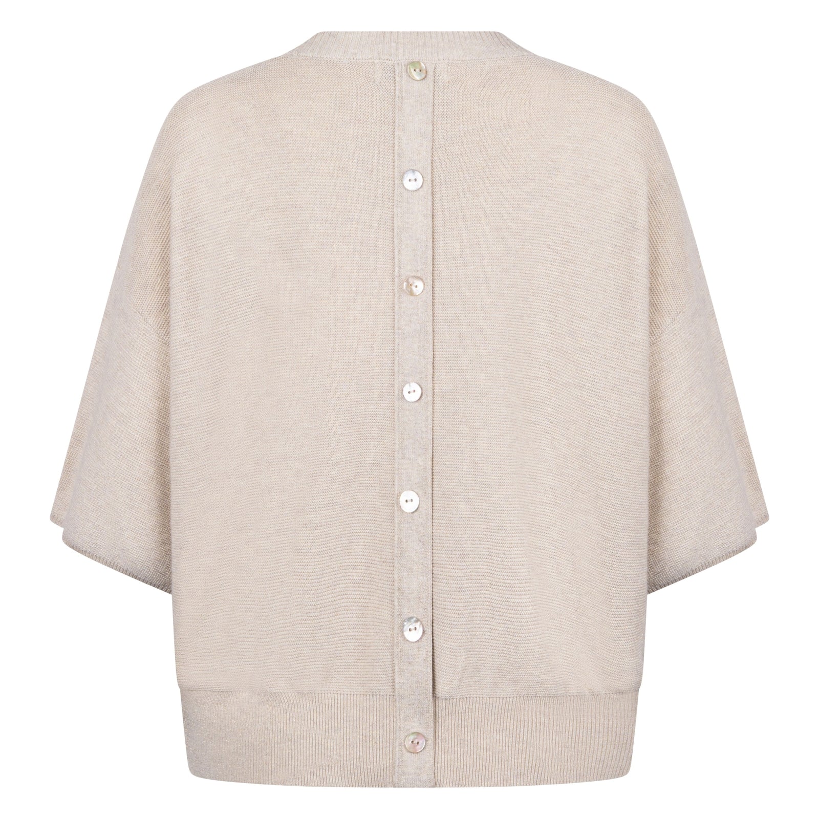 Nukus Winnie Pullover Lurex sand heeft een drie kwart mouw en een knoopjes detail op de achterkant.
