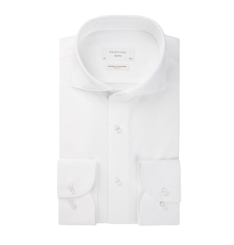 Profuomo Japanese knitted overhemd white heeft de elegantie van een overhemd met het comfort van een t-shirt. Het overhemd kan zowel casual als formeel gedragen worden. Het is een gebreid overhemd, waardoor strijken niet meer nodig is! Verkrijgbaar in meerdere kleuren.