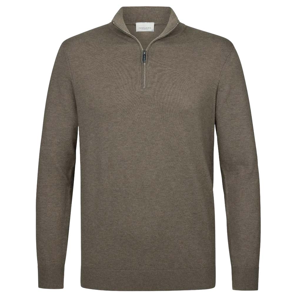 Profuomo Pullover half zip brown is gemaakt van een mix van tencel, katoen en zijde. Det trui heeft een halve rits.