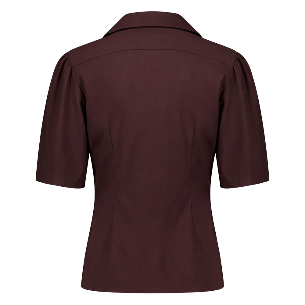 Studio Anneloes Poppy butterfly blouse espresso heeft een korte vlindermouw, een klassiek kraag, een ronde zoom aan de achterkant en is gemaakt van light travelstof. Verkrijgbaar in meerdere kleuren.