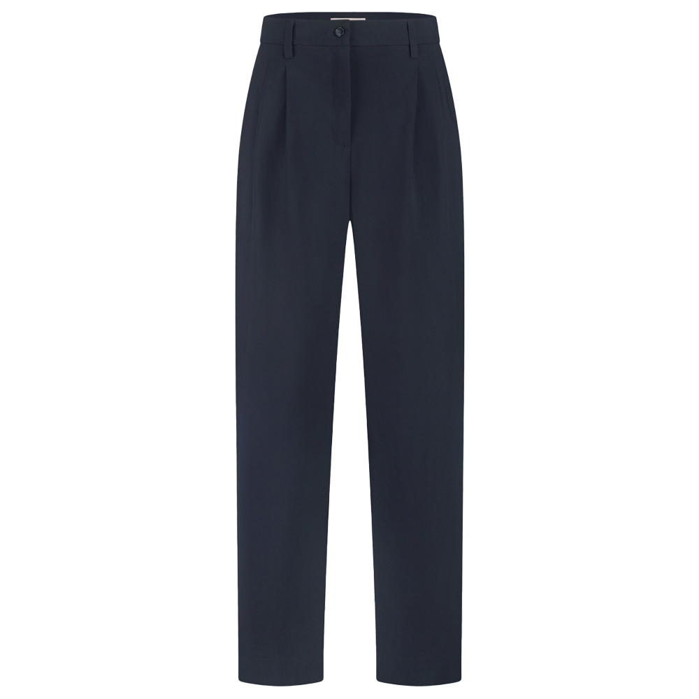 Studio Anneloes Scout trousers dark blue heeft bandplooien aan de voorkant, rietlussen, steekzakken, een regular fit en heeft een knoop- en ritssluiting.